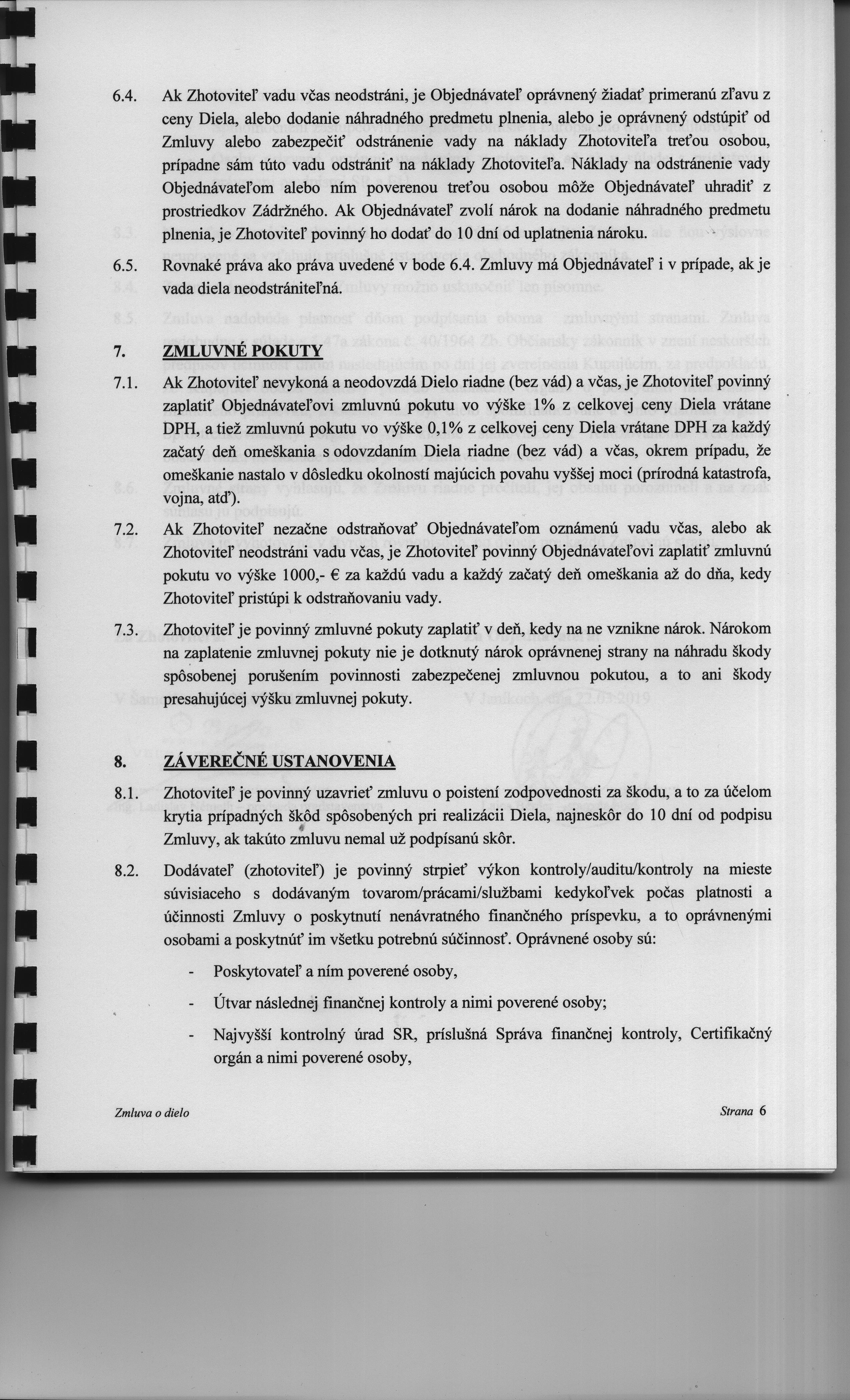 Szerződés részlet ZMLUVA O DIELO 23/2019/2