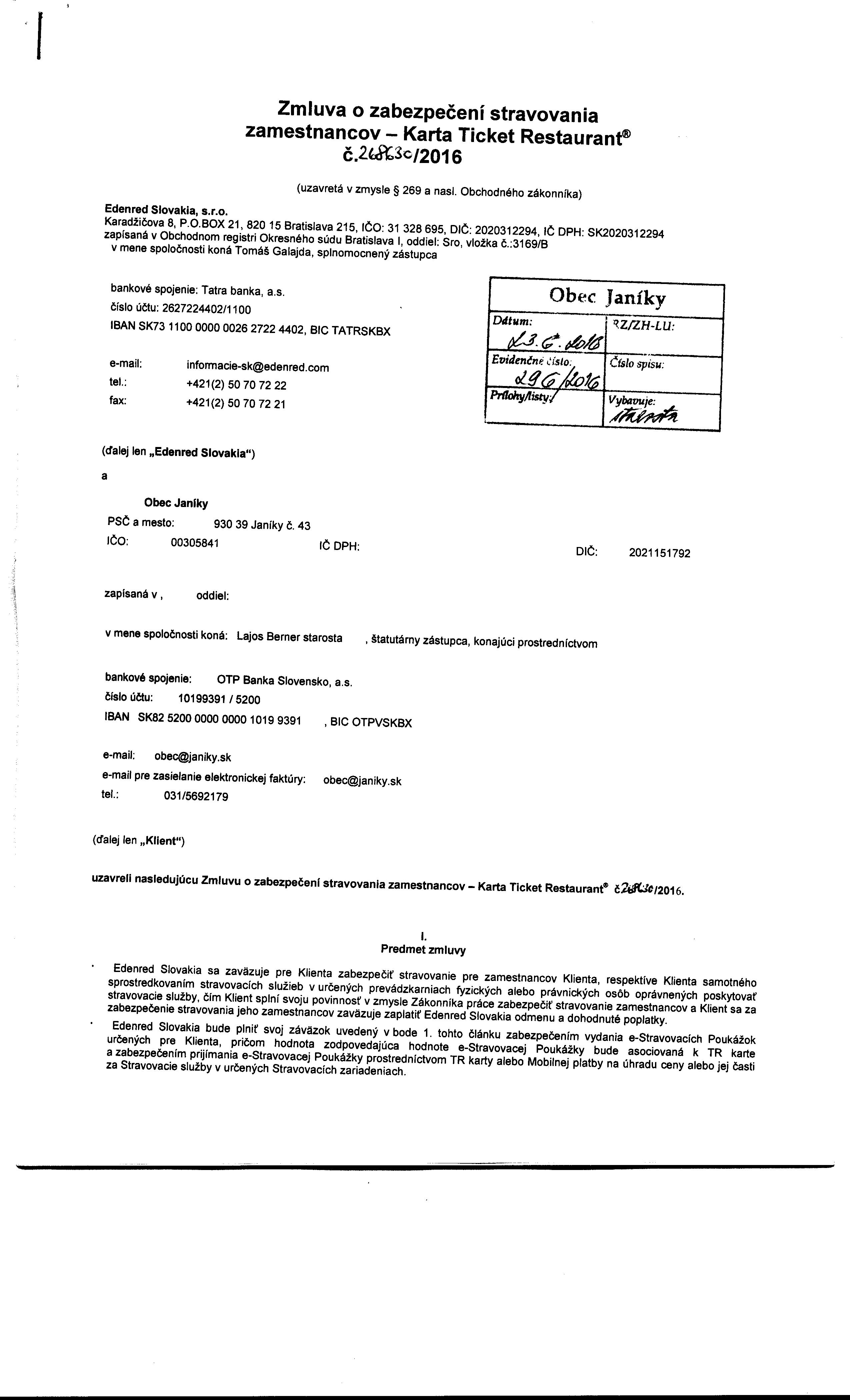 Zmluva o zabezpečení stravovania zamestnancov-č.268630/2016