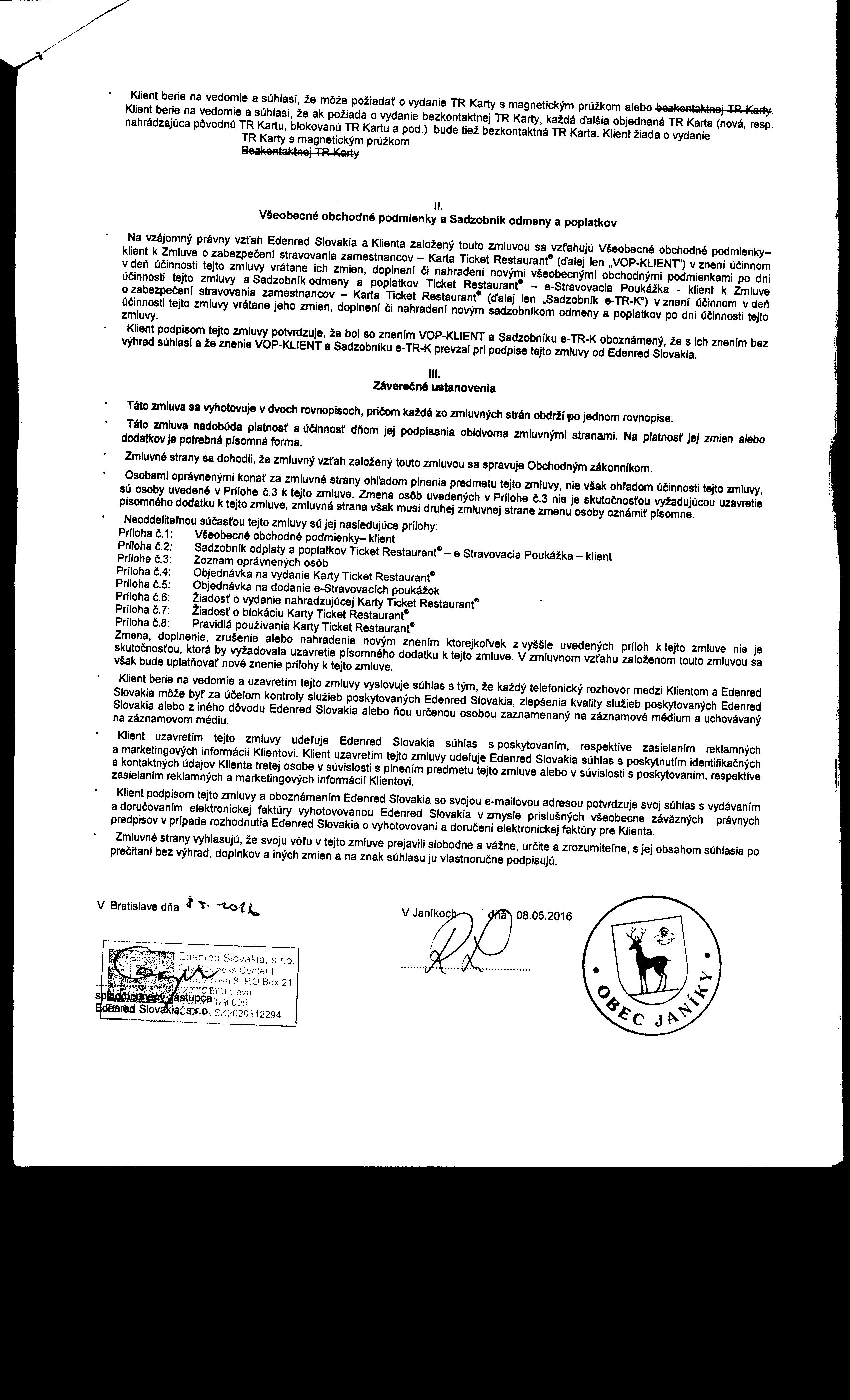 Szerződés részlet Zmluva o zabezpečení stravovania zamestnancov