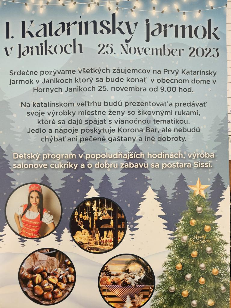 obecnom dome v Horných Janíkoch dňa 25. novembra 2023 /sobota/ od 9:00 hod. Felsőjányoki faluházban november 25.-én szombaton reggel 9 órátol