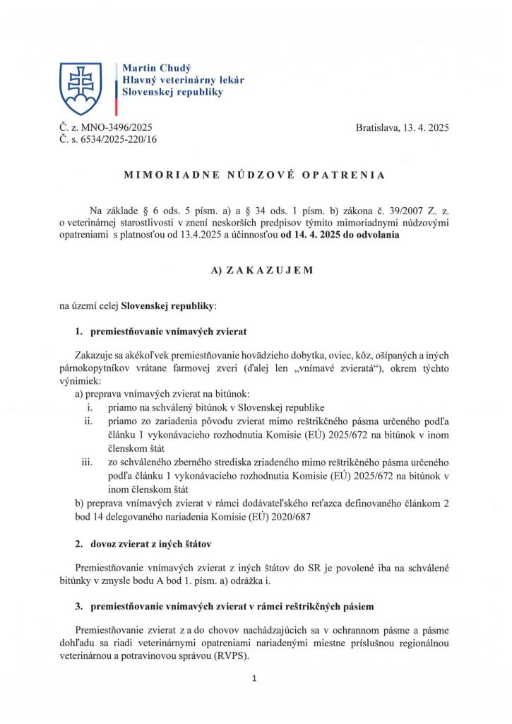 ‼Mimoriadne núdzové opatrenia od 14.4.2025 do odvolania‼